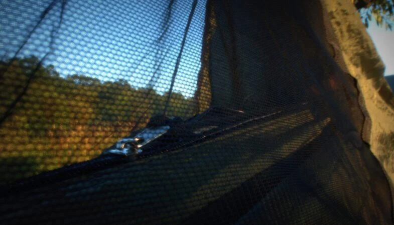 Myggenettet har en maskestørrelse på 1 mm. i diameter, hvilket sikrer, at hverken myg eller andet kryb kan finde vej igennem. Nettets densitet og den specielle tråd, der bruges i nettet, gør det meget slidstærkt overfor nedfaldne kviste og grene, og myggenettet kan spredes over hele eller kun en del af hængekøjen. Selve myggenettet udgør ca. 2/3 af overtrækket, medens det resterende er samme materiale, som selv hængekøjen, hvormed der ydes god beskyttelse mod direkte sollys, fugt og støv og som samtidig giver en behagelig følelse af intimitet.