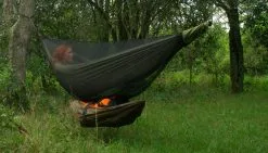 Du kan selvfølgelig blot bruge det som et velventilerende og luftigt nettelt på de varme og tørre sommernætter, men ellers overdækker du Core-Tent® Lodger med en vandtæt tarp, så det på et øjeblik forvandles til et ultralet telt. Placeres under en passende tarp kan endog to meget høje mennesker ligge i ly for vind og vejr.